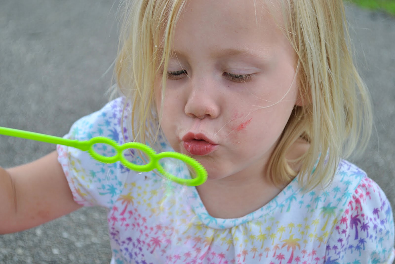 Sweet little Mary blowing bubbles. She and Tiger were good little buddies this week.